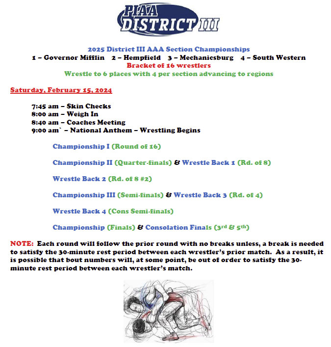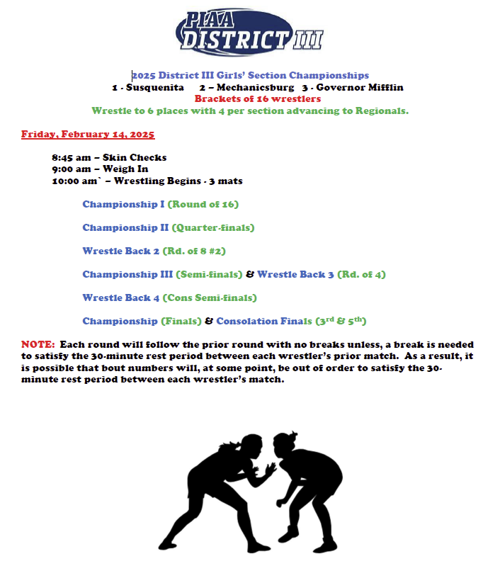 2026 PIAA D3 AAA Section III Mechanicsburg Area Senior High School 500 South Broad Street Mechanicsburg, PA 17055 |